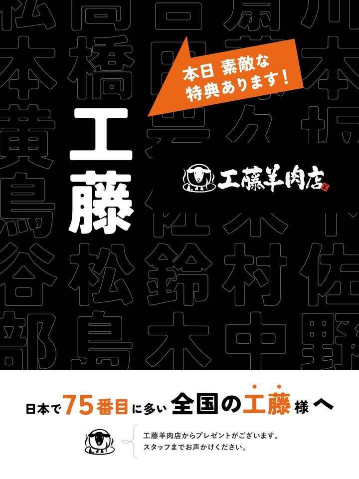 なんと!!「工藤羊肉店」に“工藤さん”が来店されると特別プレゼント🎁✨